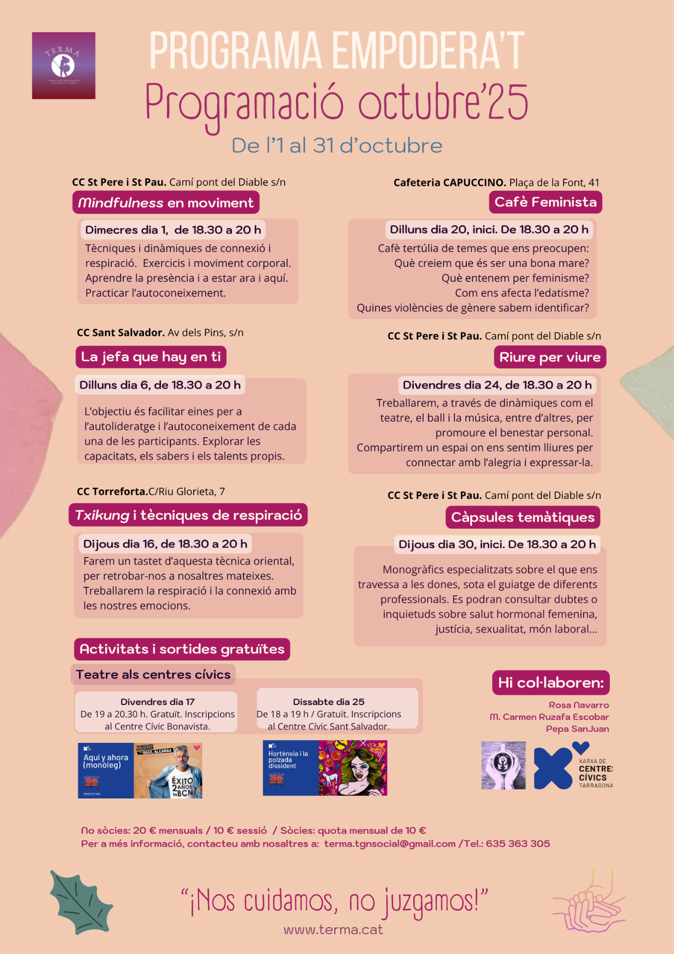 TERMA, l'associació de Dones separades i divorciades de Tarragona, és la primera i única entitat al territori dedicada exclusivament al suport, empoderament i acompanyament integral de dones que han, o estan passant per un procés de separació o divorci, algunes de les quals han patit violències de gènere.